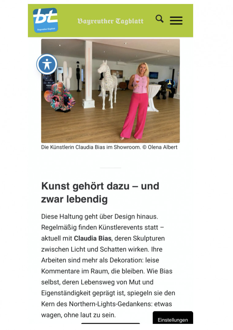 In diesem Sommer wird der Northern Lights Concept Store auf Sylt zum Schauplatz einer außergewöhnlichen Kunstinstallation: Die Art Designerin Claudia Bias präsentiert eine exklusive Auswahl ihrer großformatigen Tierskulpturen aus Fiberglas. Mit ihren farbstarken Unikaten bringt sie eindrucksvolle Emotionen und kraftvolle Symbolik in den stilvollen Lifestyle-Raum der beliebten Ferieninsel.