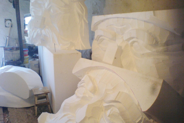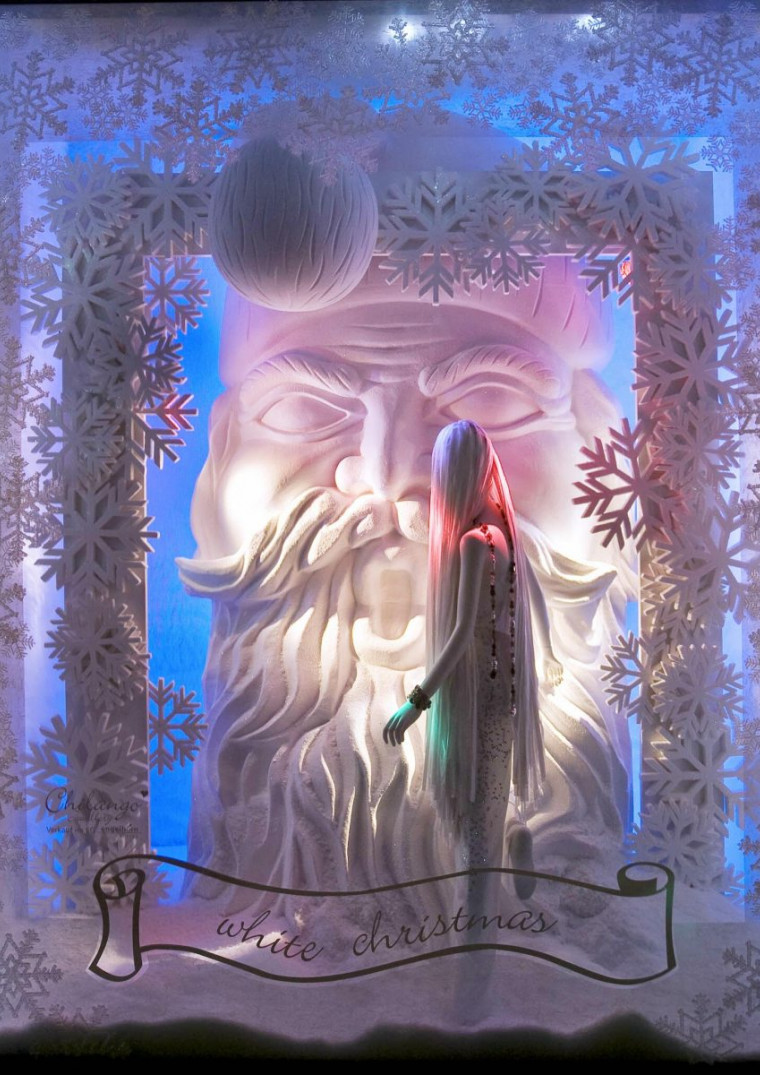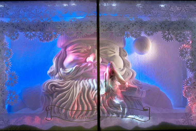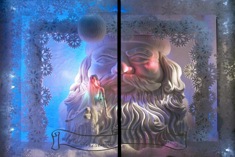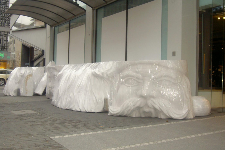 "Es gibt Objekte die fertig produziert zum Kunden gefahren werden und es gibt Projekte, die besondere Maßnahmen erfordern. So auch die bis zu 6 Meter Breite und 4 Meter Hohe Nikolausköpfe die bei Engelhorn in Mannheim in den Schaufenstern ihren Platz fanden. Aus mehreren Einzelteilen wurden vor Ort die Gesichter zusammengebaut und Schaufensterfiguren in die Bärte eingearbeitet .