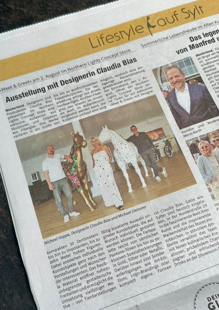 Im Rahmen der Sylt Art Fair in List stellt Designerin Claudia Bias ihrer einzigartigen Tier-Skulpturen aus – eine Kooperation der Kunstmesse mit dem Northern Lights Concept Store in Westerland, der aktuell eine große Solo-Show der Künstlerin zeigt.